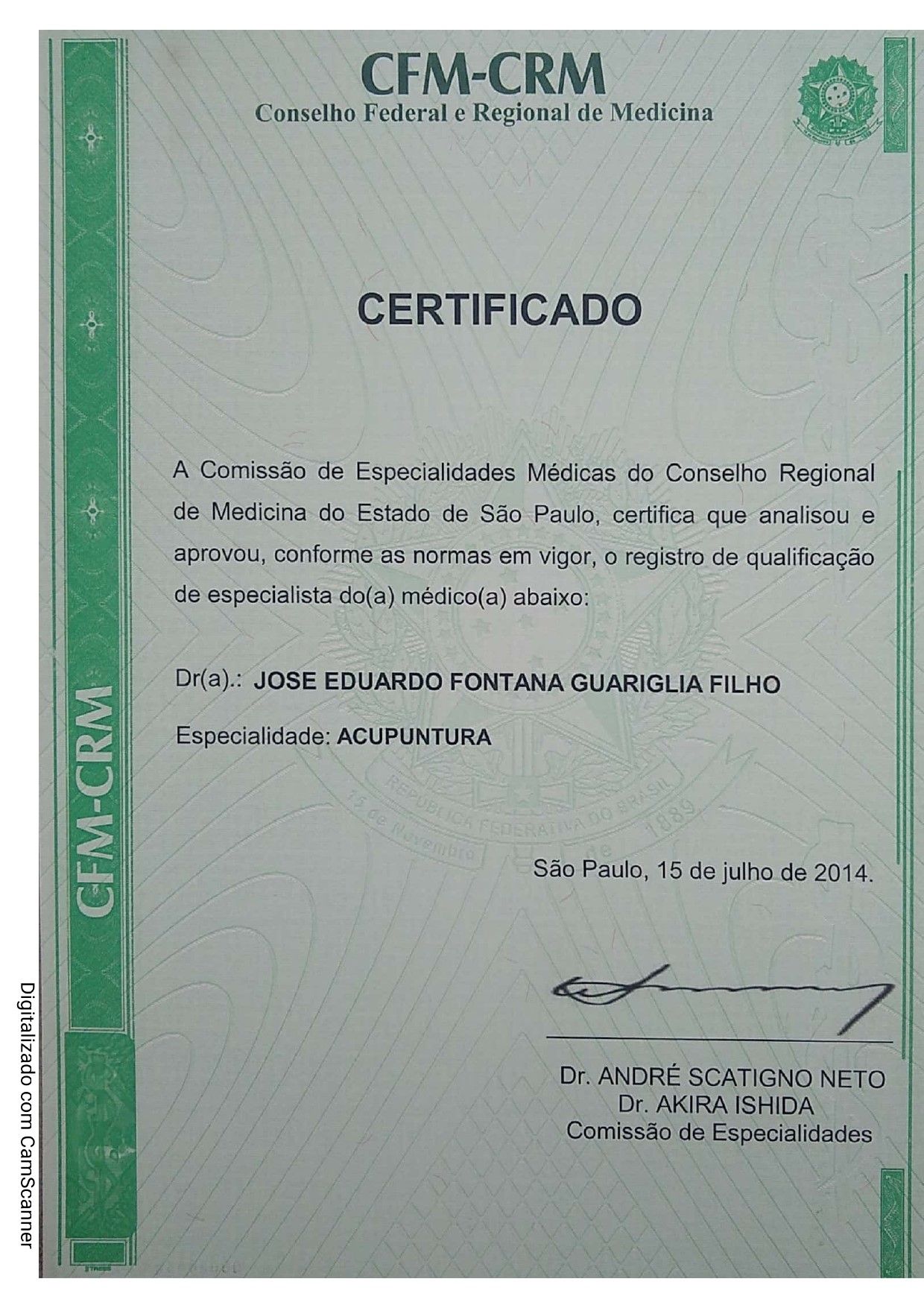 Sou Médico, formado no ano de 2.000 pela Faculdade de Medicina da Universidade de São Paulo (FMUSP), com especialização em Psiquiatra, concluída em 2.003, no Instituto de Psiquiatria do Hospital das Clínicas da FMUSP, e com formação em Psicoterapia (Psicodrama) em 2.005, também com interesse, conhecimento e formações em várias Práticas Integrativas e Complementares – já muito antes da implementação da Política Nacional das Práticas Integrativas pelo Ministério da Saúde no SUS em 2.006 – tendo iniciado essa jornada através da Medicina Tradicional Chinesa com minha formação em Acupuntura ainda durante a graduação em Medicina.